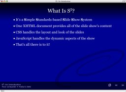 - Allows a single XHTML document to be turned into a PowerPoint-like slide show