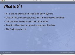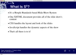 - Allows a single XHTML document to be turned into a PowerPoint-like slide show